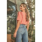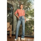 Calça jeans reta com franjas de strass. Barra desfiada.